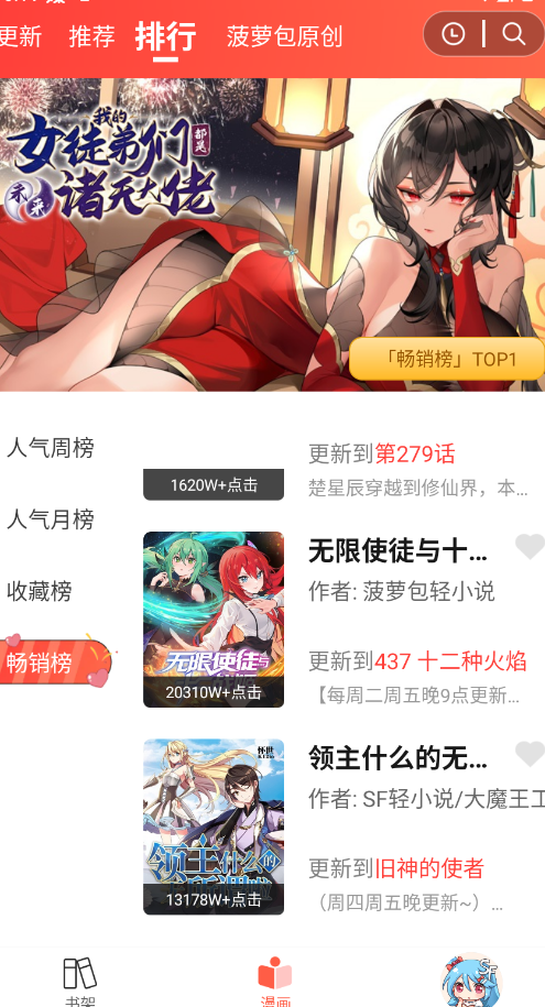 3.进入首页后,系统将展示热门推荐漫画;您也可通过顶部分类栏(如热血、冒险、校园、悬疑等)精准筛选题材,或浏览排行榜掌握当前人气作品。