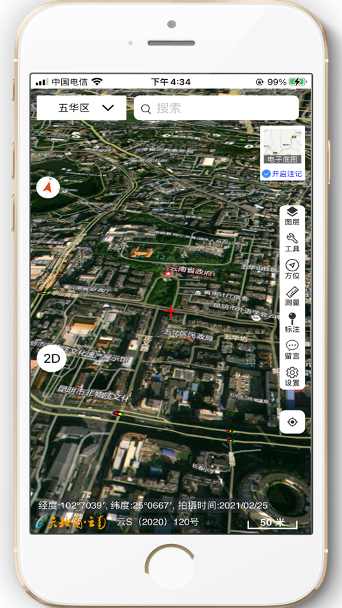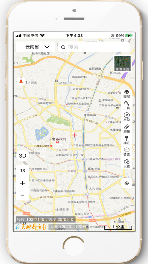 天地图云南2026版是基于云南地图打造的信息服务平台,二维/三维地图、标准地图/卫星地图随意切换,拥有超多工具,实时定位查看你的方位,进行地理量算、地图标绘,需要的朋友赶紧来下载吧。