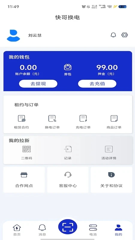 打开你的快哥换电App,点击前往个人中心。