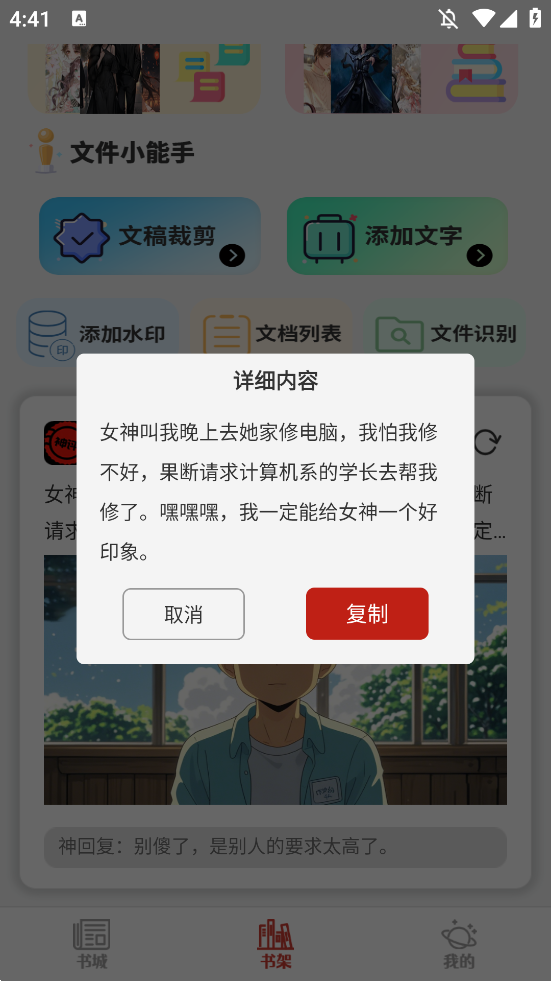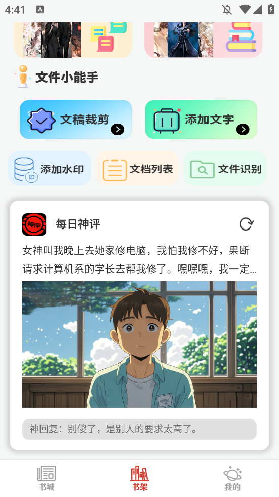 爽文小说阅读器是一款专为小说爱好者打造的高品质免费阅读软件,汇聚海量热门爽文资源,满足用户随时随地畅享阅读的需求。凭借丰富的小说类型与便捷的操作体验,该应用已成为众多读者的首选平台!软件内置详细分类系统,涵盖都市爽文、玄幻修真、校园言情、逆袭重生等多种题材,所有资源全部免费开放,无门槛畅读。同时,通过智能推荐算法,可根据用户阅读偏好个性化推荐优质内容,帮助用户快速发现感兴趣的作品,大幅提升阅读效率与乐趣。