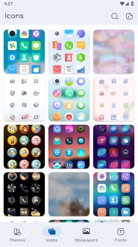 在图标页面,选择喜欢的图标,点击下载即可应用;