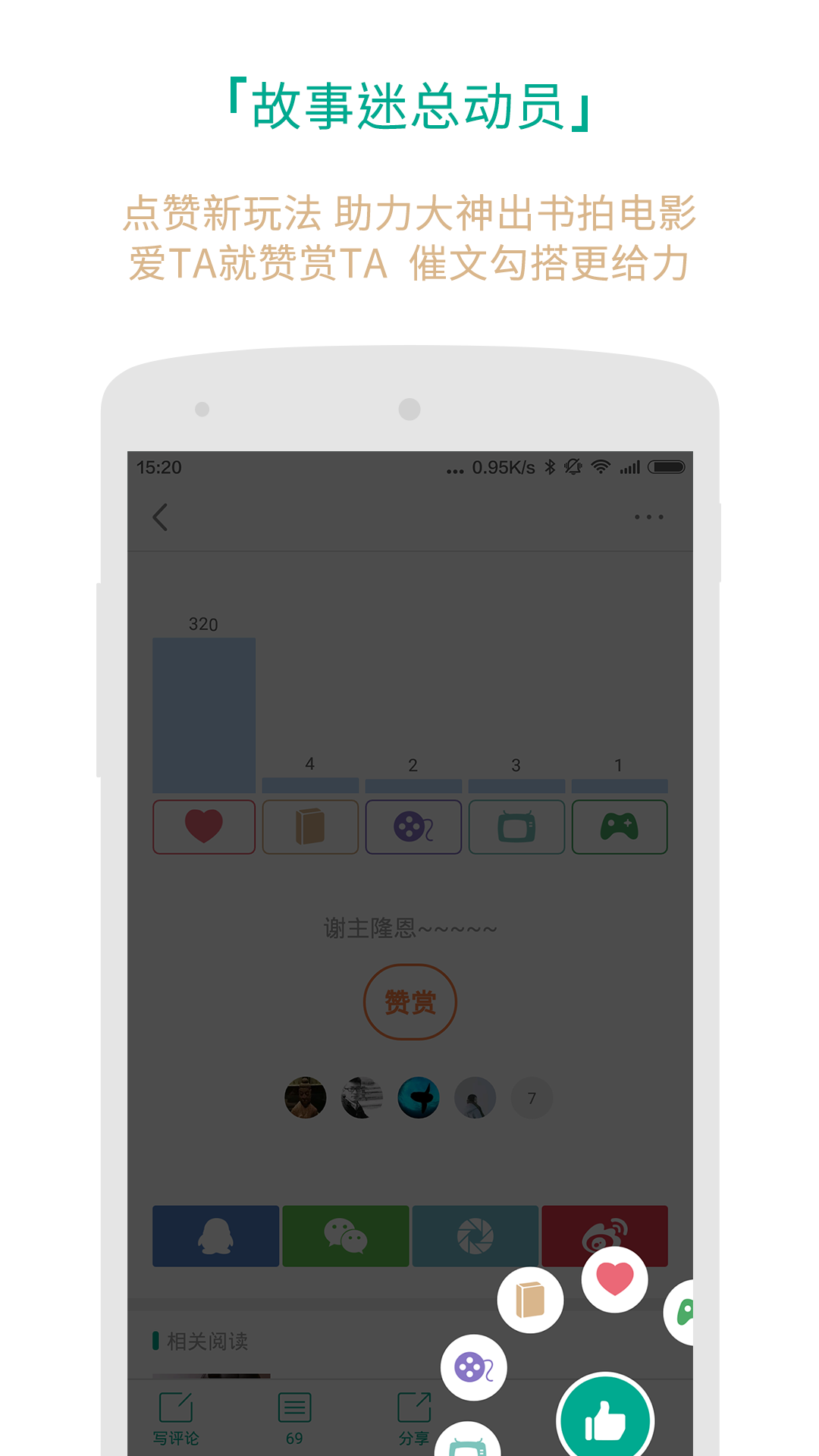 【故事迷总动员】点赞支持出书、拍影视,还可以”打赏“大神,勾搭、催文效率翻倍。