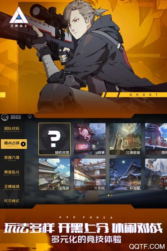 《王牌战士》是由腾讯魔方工作室自研出品的热血漫枪战手游。感受FPS第一人称射击的畅快淋漓!没有固定套路,单局之内随意切换角色,多人组队,PVP公平竞技!更有据点争夺、骇客入侵、团队对抗、机甲乱斗等多种玩法模式,带来燃爆的热血战斗体验!王牌战士是一款以FPS为主的射击手游,玩家将会在游戏中选择那些的热血动漫角色进行一场酣畅淋漓的枪战对决,局内支持换人出战,每个角色都有其鲜明的技能和职业定位,多种元素的碰撞下,唯有成王败寇才是游戏中的第一目标,秀出你的枪击,Carry全场吧!