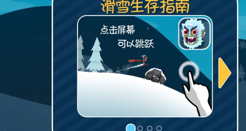 1.在《滑雪大冒险》中,玩家要操控Sven在雪崩来临前极速逃生!途中遍布石头、草丛、冰凌等障碍,稍有不慎就会摔倒,拖慢速度。一旦跌倒,记得快速点击屏幕,让Sven立刻爬起继续冲刺!