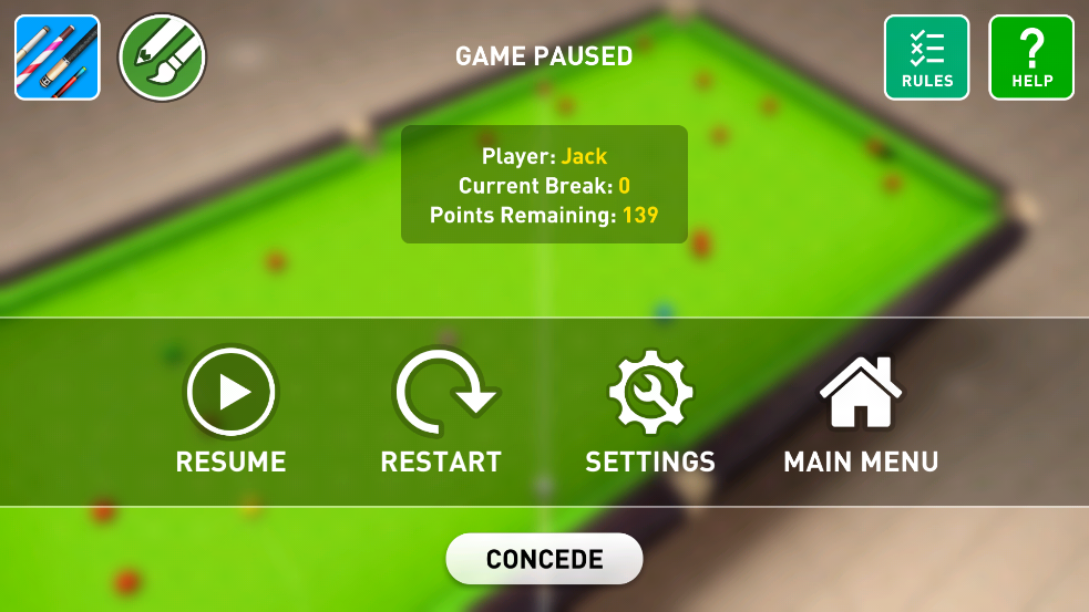 斯诺克模式和练习模式。