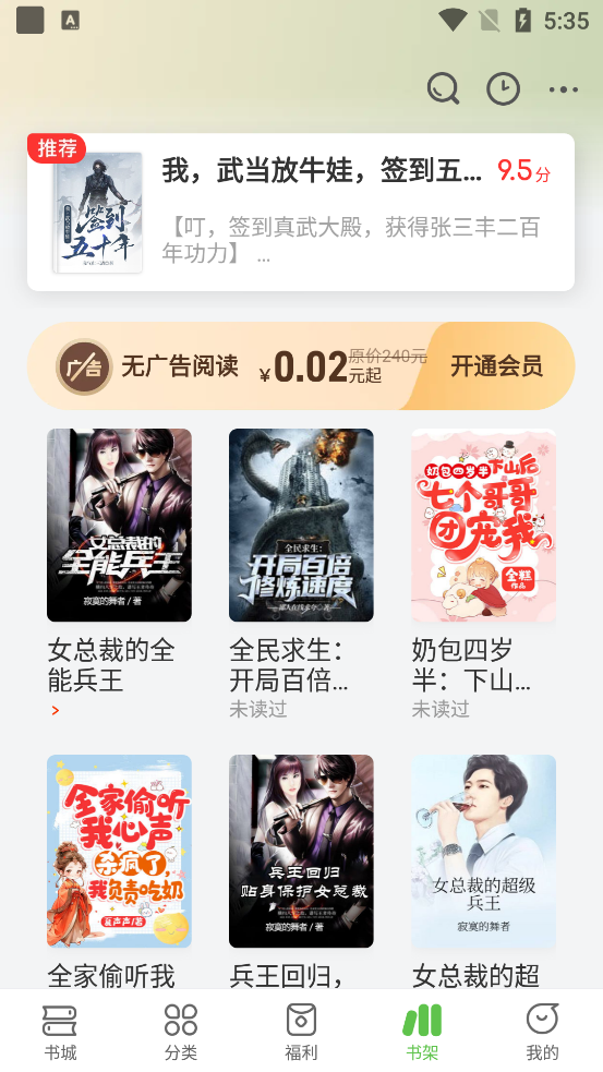 打开签到界面就能够通过每天签到免费获取大量的阅读福利
