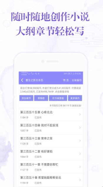 2、支持云端备份和恢复到本地,多重机制保护数据安全,不用担心小说丢失,更支持手机和电脑同步写作,同时兼顾方便和快捷