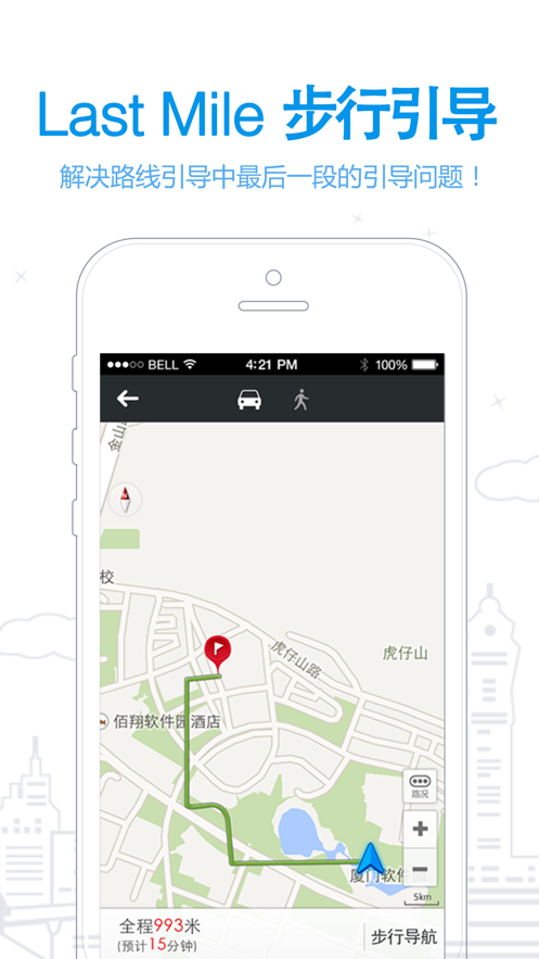 Last mile步行引导功能正是为了解决路线引导中最后一段的引导的问题,引导您如何从停车位到最终目的地!