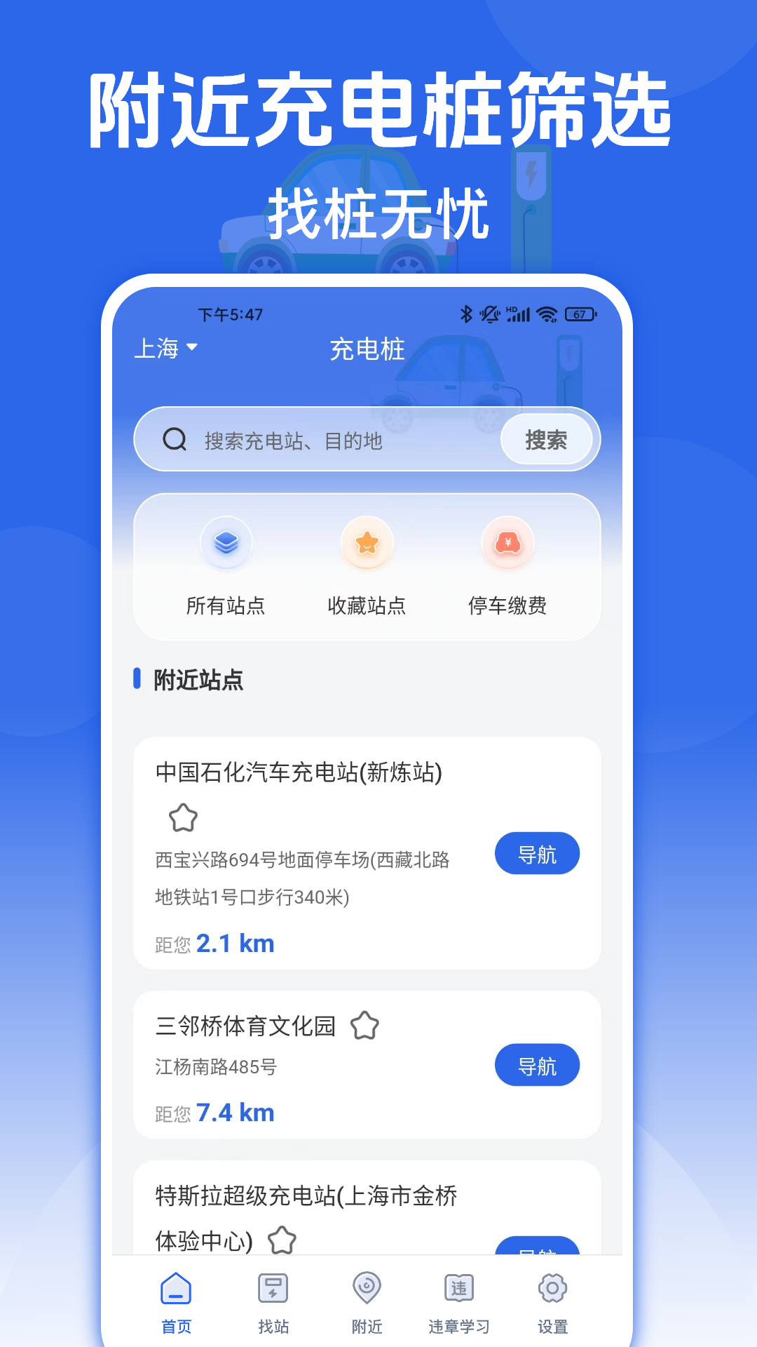 2.智能推荐,为您推荐身边靠谱的充电站;