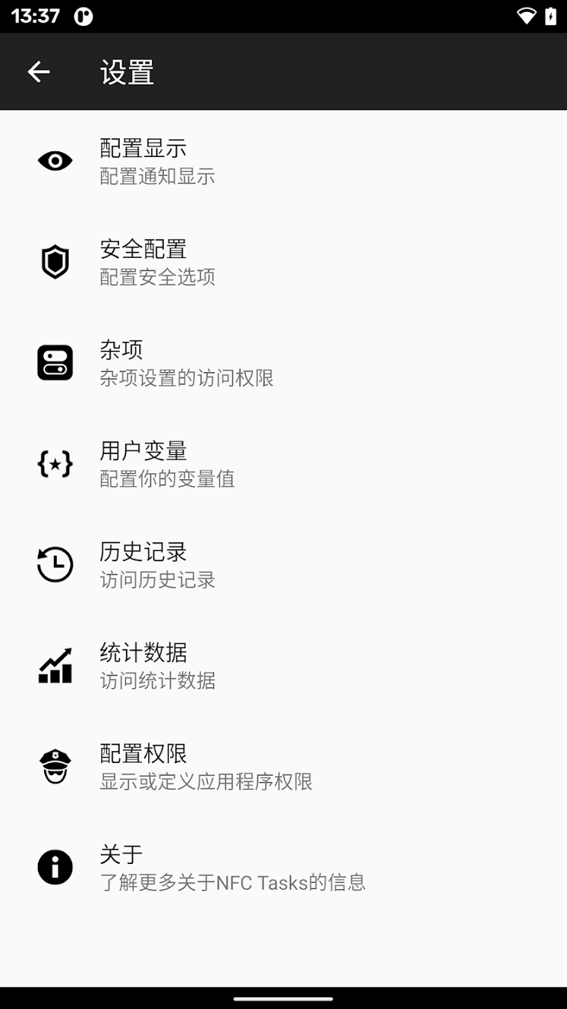 NFC Tasks最新版本是一款超棒的门禁工具。专业的帮助你管理配置各种文件,超好用的nfc工具箱!快速读取nfc卡片信息,实用软件工具,轻松检测配置任务,非常好用!