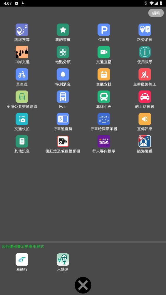 香港出行易app首页有所处位置的地图、常用功能、最新消息,常用功能包括路旁泊位、口岸交通、地点分类等,关于交通快讯,有特别消息、交通安排、主干道路施工等,还有主要交通快拍、交通直播、行车速度屏、行车时间显示器等。
