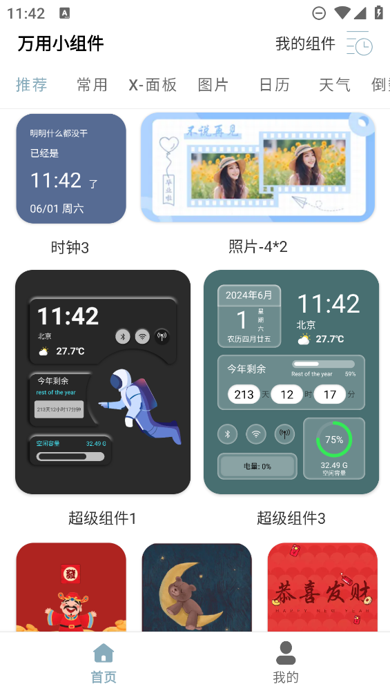2、其他万能小组件还包括相册桌面小组件,时间桌面小组件,天气桌面小组件等