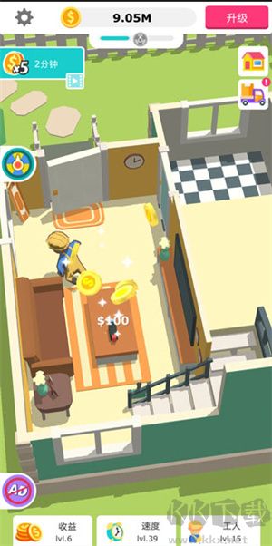 3、开工后,房子每完成一项装饰就可以获得一笔金币收益,可以在右上角升级。