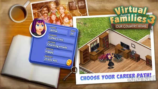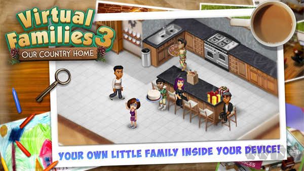 虚拟家庭3最新版是一款家庭模拟经营游戏,英文名为Virtual Families 3,也是《虚拟家庭》系列的第三代全新作品,以前作相较而言,该游戏不仅延续了该系列的基本游戏玩法,还增加了许多新的内容元素,为玩家带来全新的模拟经营游戏体验。它主要采用了与真实时间同步的模式,可以控制小人去做饭、工作、赚钱和休息等等,也可以完全不操控他们,让他们自主意识的做着自己想做的事情 ,就是生病了需要我们的照顾,并喂相对应的药品。