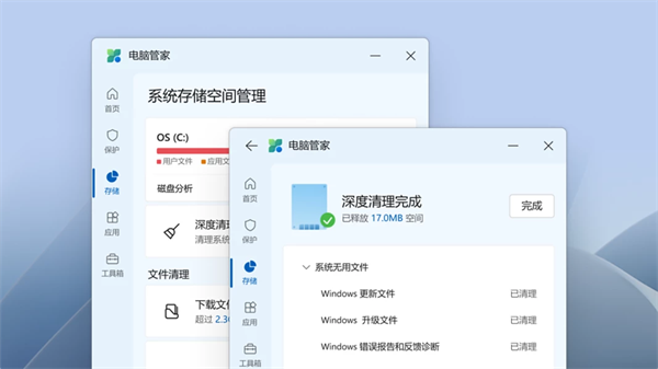 深度清理系统存储空间,管理大文件,开启磁盘感知,释放您的电脑存储空间。