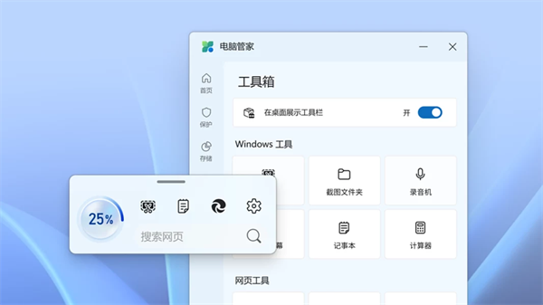 内置多种Windows小工具,提升你的电脑使用效率,好用功能,一键直达。