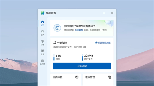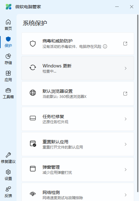 快速检测电脑异常,垃圾清理,病毒检测,系统风险一键解决。