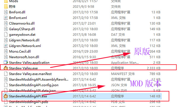 如你只想玩原版,点Stardew Valley.exe开始游戏