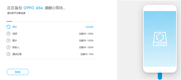 备份过程将需要几分钟。在备份过程中,请不要断开您的 Android 手机,不要使用该设备或删除手机上的任何数据。