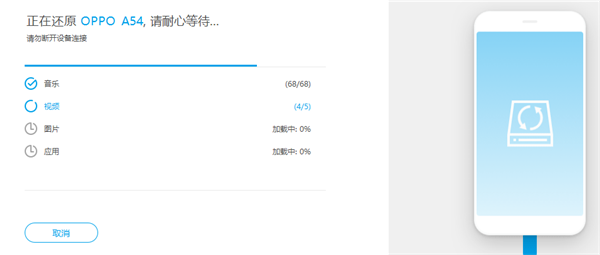 整个过程只需几分钟。请不要断开您的安卓手机或打开任何安卓手机管理软件。