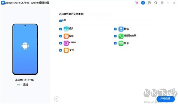 当重定向到新屏幕时,选择您想要从 Android 恢复的所有文件类型。单击屏幕右下角的开始扫描继续;