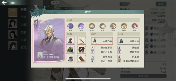 玩家在《汉家江湖》手游中到达50级后,就需要着手开始考虑主角怎么提升战力。因为大部分萌新都是玩的刀魔 ,我们就以刀魔为例,一起往下看看吧!