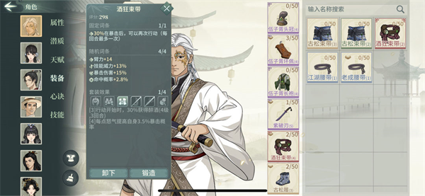 刚到50级,终于换上了伍子胥套,非常适合刀魔输出 腰带用酒狂腰带 ,鞋子用副本夜战洛阳的木屐