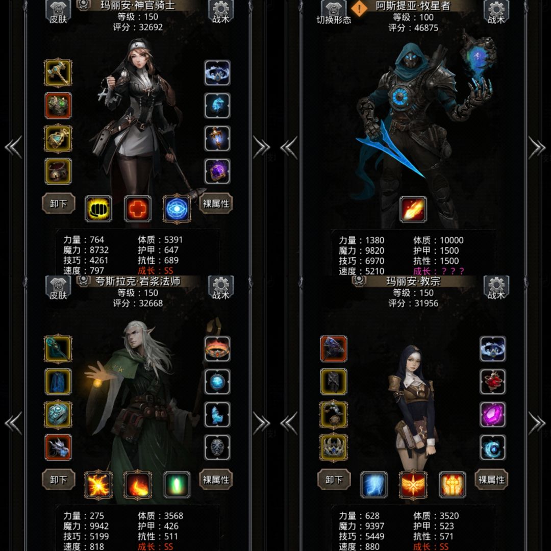 神官:黎明套,寐之铠,恶魔铃铛,体魔水环,耀晶石,深渊心。魔力越高越好,体质在5000左右即可