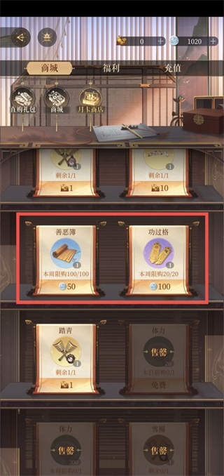 善恶薄可以单次随机重洗所有增益效果;功过格可以在洗练时单次锁定命盘上的一个效果。