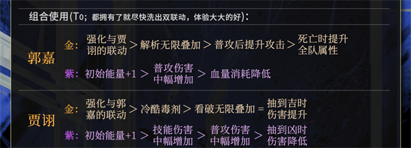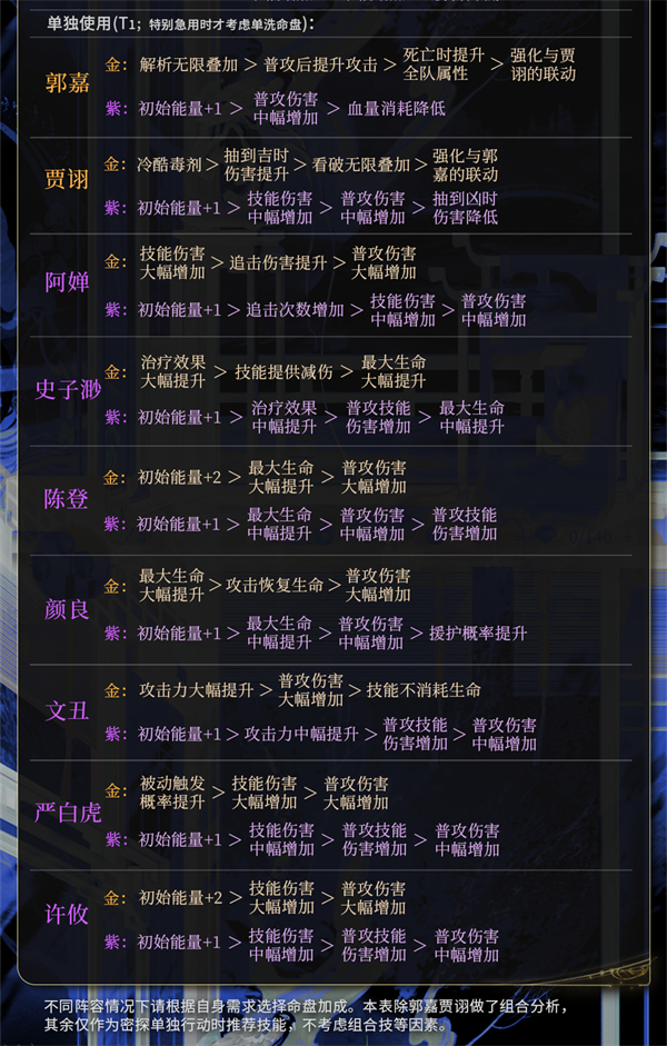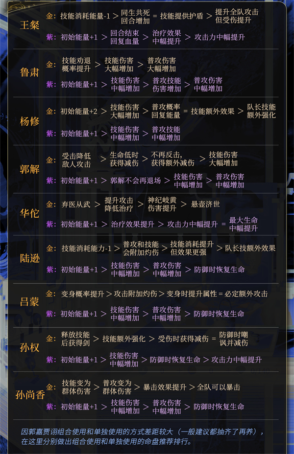 2、增益效果以橙色优先,橙色中也分优先级,这个可以根据具体的角色/配队进行选择。