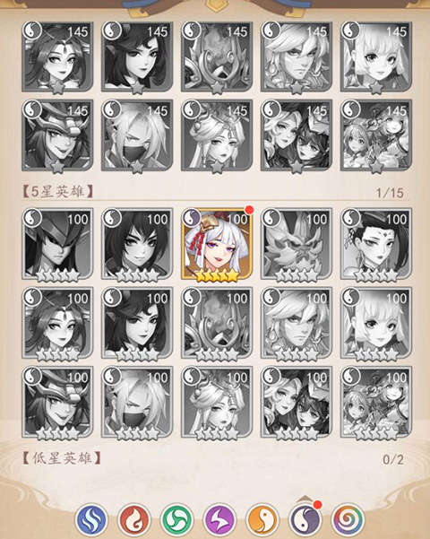 游戏内有着风、火、水、雷、阴、阳六种阵营英雄。