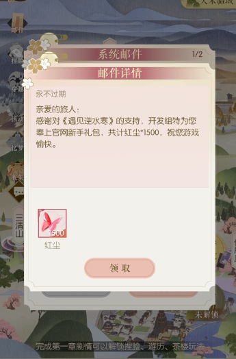④ 在邮箱-官网新手礼包,可领取大量红尘点,只能领取1次。后续可能会有一些福利发放红尘~
