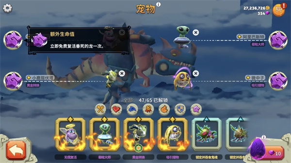 其中,左侧两个分别减少血量流失效果50%,第一个还附带最大生命值减少30%。血量流失减少100%的效果,真的会震惊你的小伙伴!流血很难,杀怪很容易补满,这两个宠物让玩家超长时间存活成为了可能