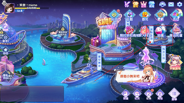 玩家进入游戏中,在社区的左侧,玩家就可以看到宠物乐园,玩家达到八级就会赠送一只宠物,还可以进入宠物商店来获得心仪的宠物。