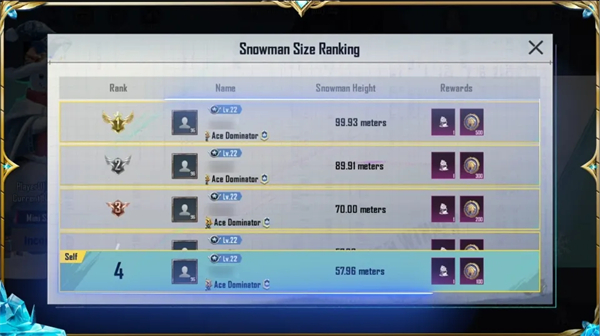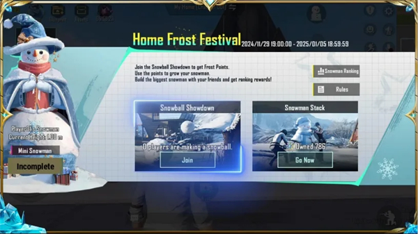 雪人达到5米高时,可以领取家园袖珍雪人摆件,还可参与全服雪人排行榜赢取称号奖励。
