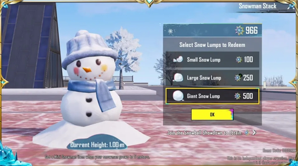 消耗冰雪点数可兑换3种尺寸的雪团,并使雪人随机变大。
