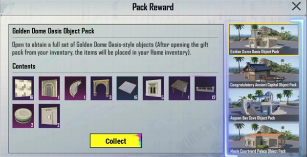 家园新手等级礼包升级,可在绿洲、古都和碧湾3种风格建筑之间任选其一,打造独具个性的家园。