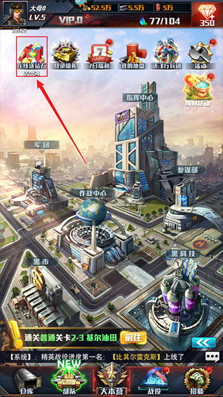 红警大作战玩家只要登录游戏就能获得当天的登录奖励,该奖励就有钻石,这是玩家获得钻石的一种途径。