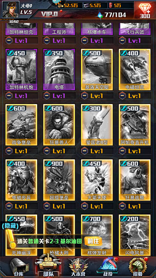 如果玩家在红警大作战游戏中军事演习通关到一定的关卡,这样也能获得钻石等奖励。
