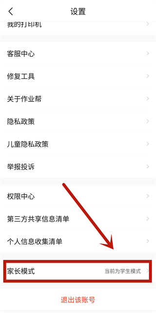 作业帮切换家长模式的方法