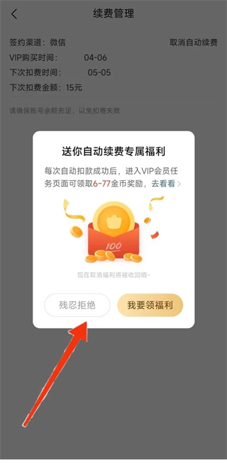 4、在VIP会员中心里,滑到最底部,点击“自动续费管理”进入