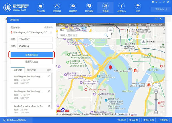 借助爱思助手的虚拟定位功能,可以将苹果设备定位到任意地点,足不出户就能让朋友圈、微博内容显示到想要的位置;如果某些游戏限制了使用区域,使用爱思助手虚拟定位也能轻松突破。