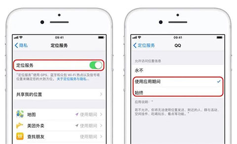 ①iPhone 使用定位时,需要首先在“设置 - 隐私”中打开“定位服务”,然后点击需要使用定位的软件,将权限改为“使用应用期间”或“始终”。