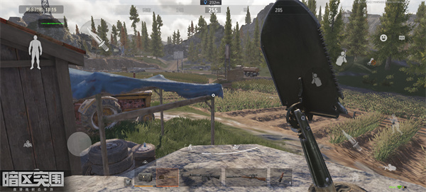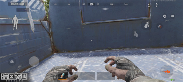 然后在木头和墙之间趴下,一般建议把头瞄准另外。我们只需要在这里一边静候佳人,敌人来到我们身边就可以直接捏瞬间爆雷或者站起来打敌人。