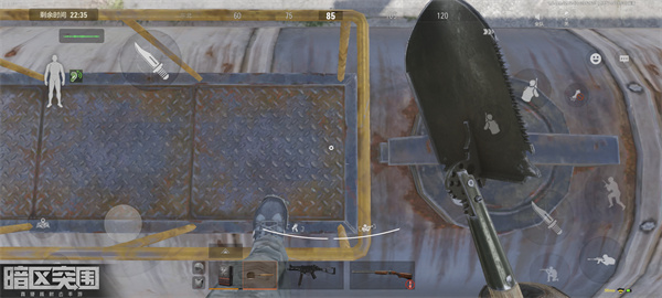 一般不在蓝色棚顶上面狙击。而是跑到木屋上面狙击,因为有一个烟囱可以充当下部掩体,同时还可以利用屋顶两把的灌木减少被敌人发现或者打到的视觉。